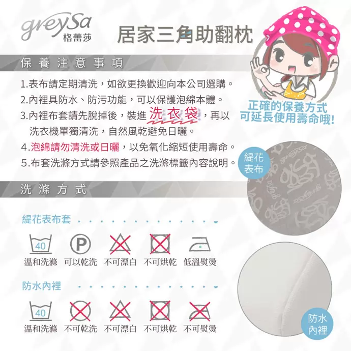 5. 布套洗滌方式請參照產品之洗滌標籤內容說明 。