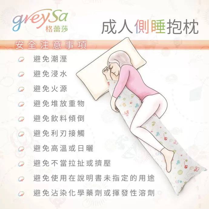 GreySa格蕾莎【成人側睡抱枕】安全注意事項: