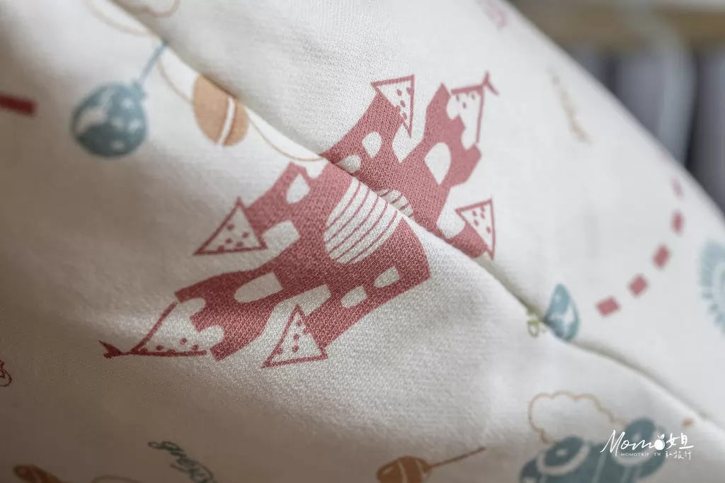 格蕾莎的對於產品的材質一向也都相當重視喔!這個成人側睡抱枕,採用布套是『純棉印花布套』摸起來相當舒服,我時常忍不住會用臉去躺在抱枕上呢!純棉印花布套的外層相當舒適外,它也有透氣性也不失保暖度喔!四季都非常適合使用!它的內層是綿綿密密的纖維毛圈,材質非常好啊!布料上除了有可愛的圖案之外,還有品牌的logo融入其中。圖樣的用色我也很喜歡,是帶有一點灰的色彩,是個很適合搭配各種家具的色系。