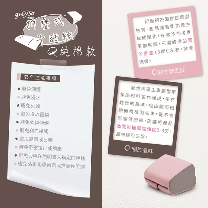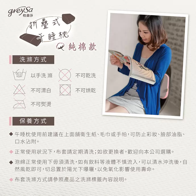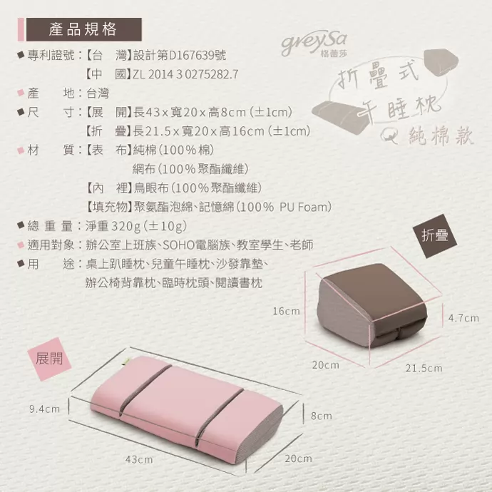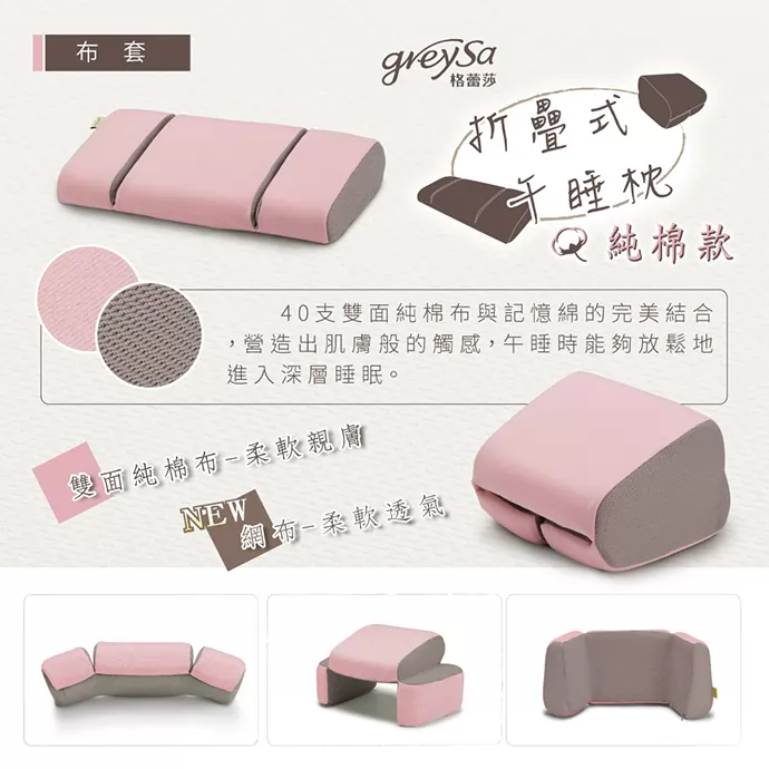 GreySa格蕾莎折疊式午睡枕純棉款適用對象:有午睡習慣的上班族、SOHO族、學生、孕婦等