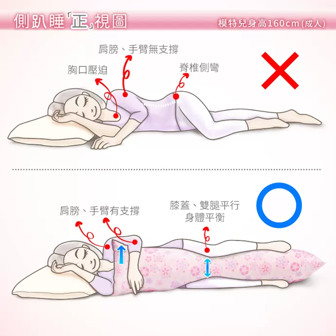 側趴睡時手該怎麼放才不會壓迫胸口?腿該怎麼擺才能保持骨架平衡?