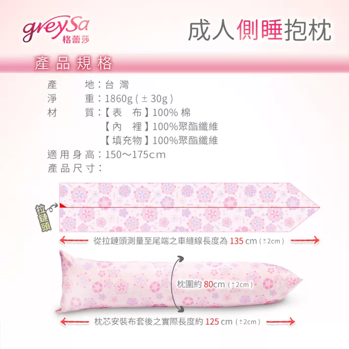 GreySa格蕾莎成人側睡抱枕產品規格: 產地:台灣