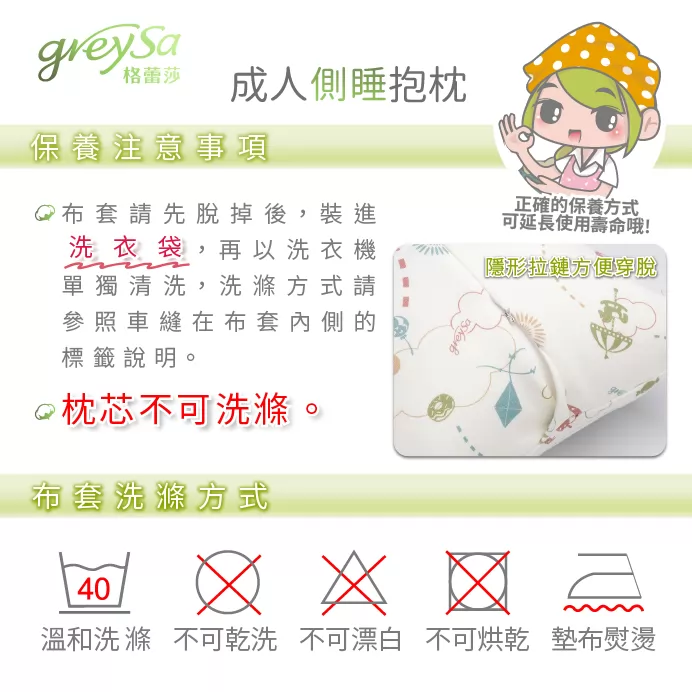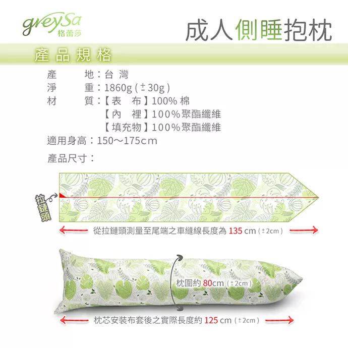 GreySa格蕾莎成人側睡抱枕產品規格:產地:台灣