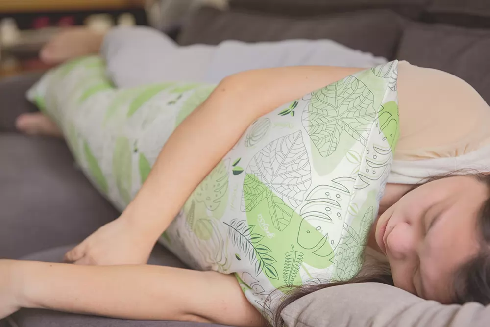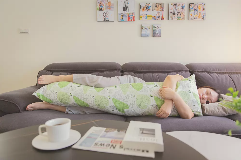 家中沙發的座位可以拉出來成為小憩的小床,某日午後趁著兒子睡著,米媽偷閒喝著下午茶看本雜誌,一時也有點睏了,便直接就沙發小躺一下,格蕾莎的「成人側睡抱枕」成為米媽的新寵,直接抱著側睡,因為抱枕的特殊設計讓全身各部位很放鬆,米媽每次使用都可以很快就入睡,就算聽到兒子米寶在房間哭了還是很不想起床,因為抱枕可以讓米媽很放鬆進入夢鄉,想一直安穩地躺下去……