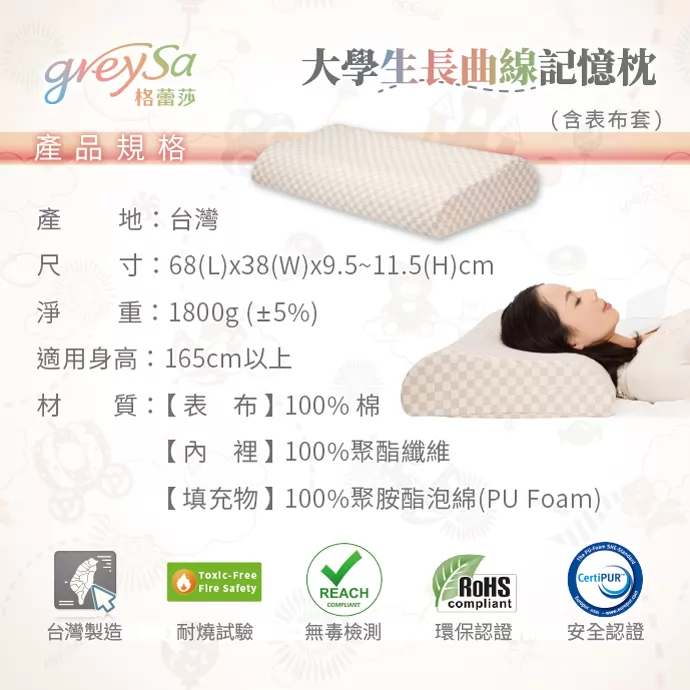 GreySa格蕾莎所使用的泡綿原物料,均通過SGS國家級無毒、耐燃、環保多重檢驗