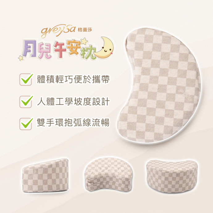 如果家裡也有小學生,需要一個安全無毒又親膚的午安枕,可以跟著Olivia選擇格蕾莎設計的月兒午安枕,輕巧好攜帶,強力的支撐讓孩子午睡不再手麻!