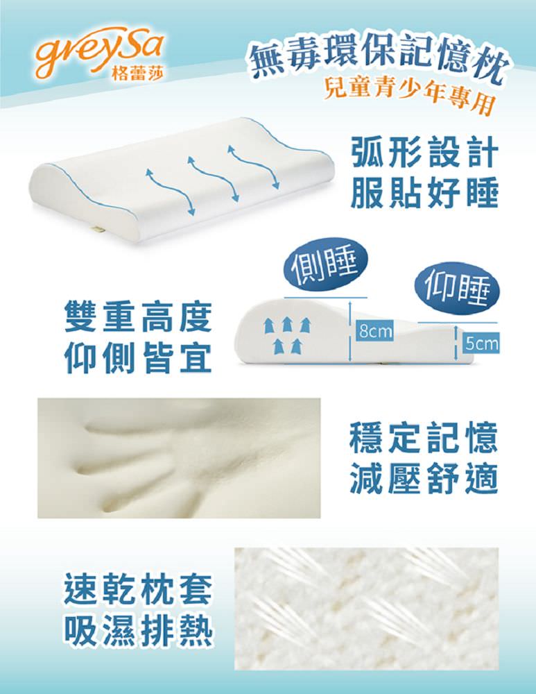格蕾莎【無毒環保記憶枕】兒童青少年專用:https://hk.greysa.com.tw/Product/detail/pid/96/