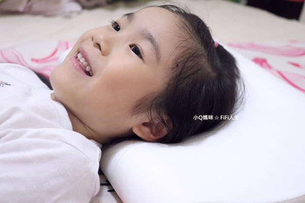 實躺結果揭曉!自從換了這顆枕頭,說也奇怪~小Q妹她幾乎不再床上流浪了耶,每天早上醒來時就安安穩穩地躺在這顆枕頭上,看起來就是正好眠呀!至於她是仰睡+側睡的綜合睡姿,到底該睡枕頭高的還是矮的哪一邊呢?,小Q妹頭一晚是先睡矮的、第二晚再睡高的,第三晚她告訴我、她比較喜歡高的那邊,哈哈~所以如果也是綜合睡姿的孩子,答案就是靠自己的感覺去選擇嚕!謝謝GreySa格蕾莎無毒環保記憶枕,我想我找到最適合的枕頭了!